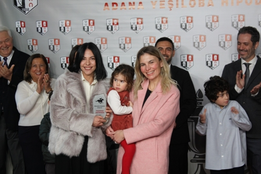 Merhumun torunu Begüm Sökün, kazanan safkanın antrenörü adına Ayşe Süslü’ye plaket takdim etti.